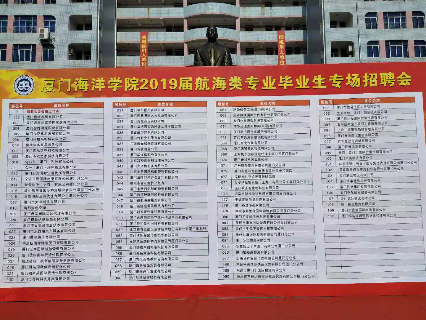 2018年11月21日 廈門海盈海運(yùn)有限公司行政人事部代表公司前往廈門海洋學(xué)院參加2019屆航海類專業(yè)畢業(yè)生專場招聘會(huì)。